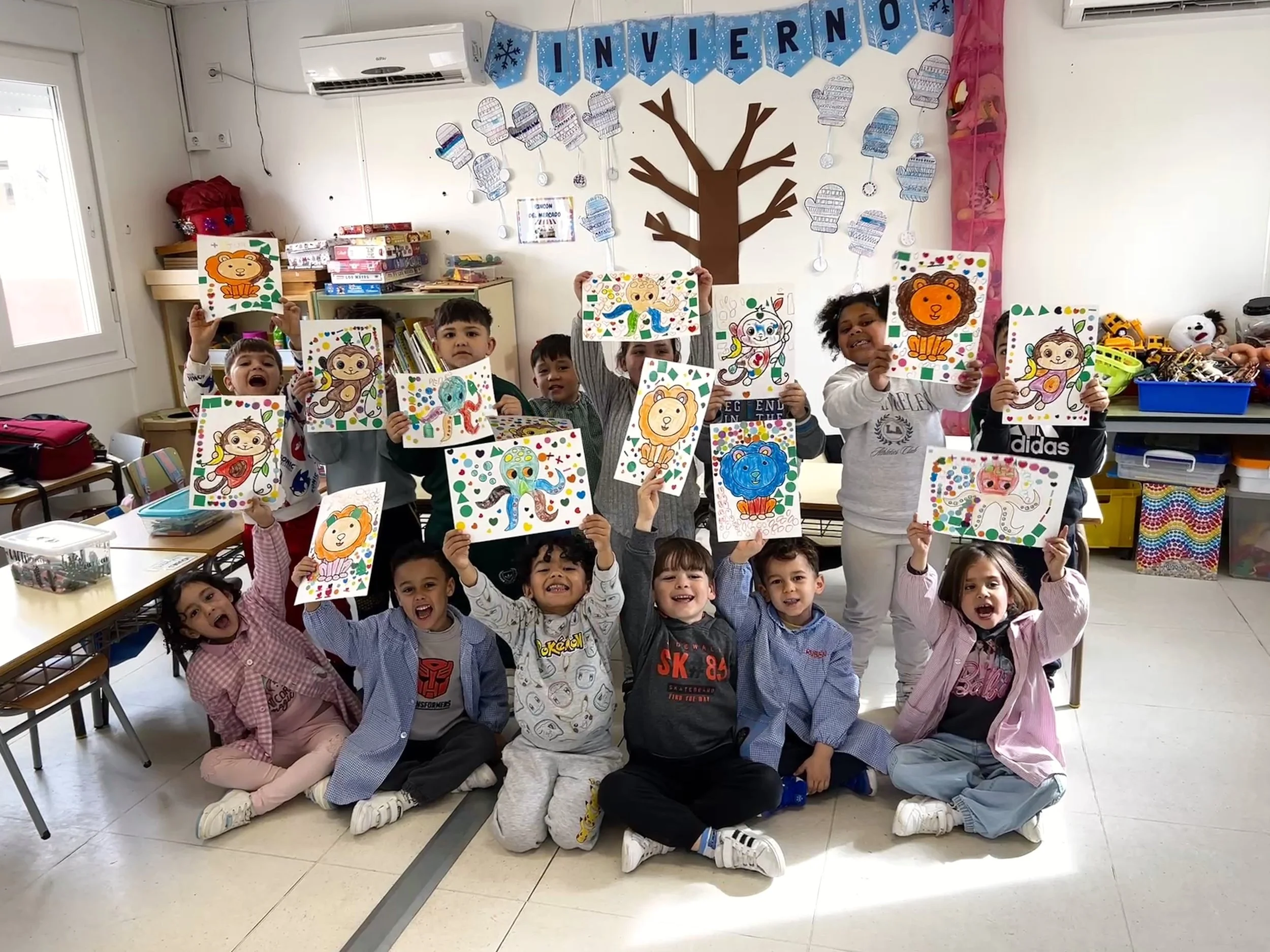 Alumnos de infantil con sus animales ganadores también elegidos con una votación adaptada a su edad en CEIP Severo Ochoa